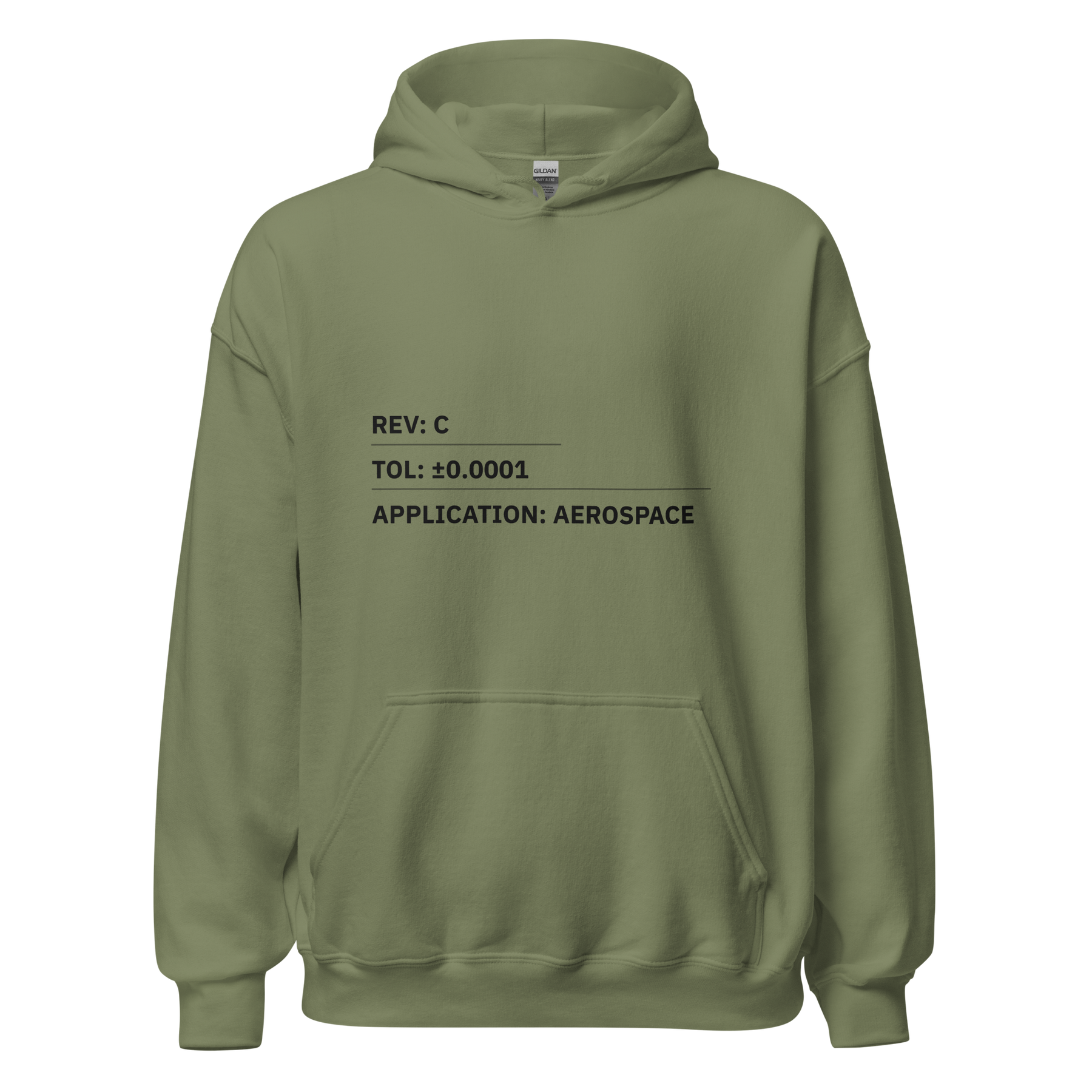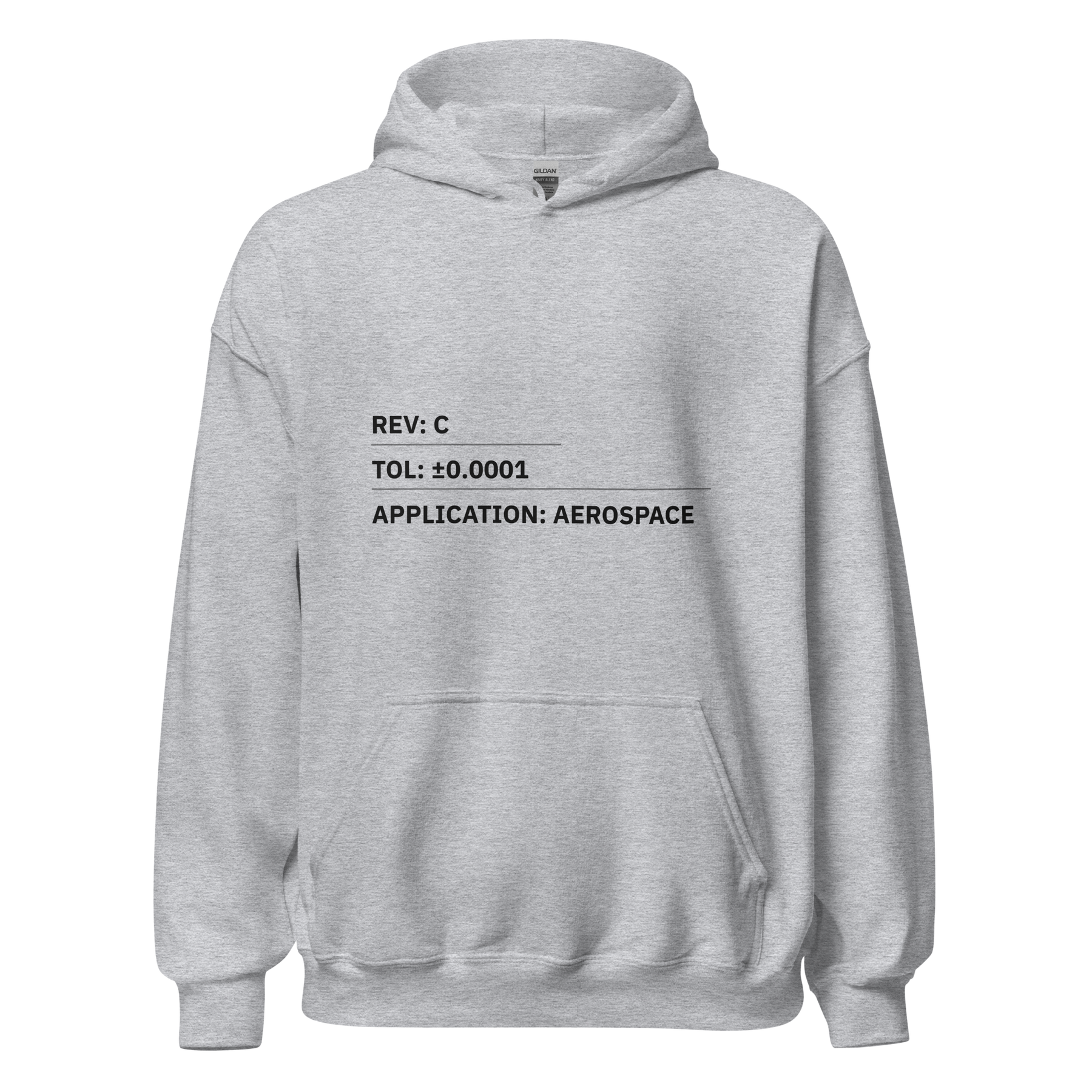 The REV: C / TOL: ±0.0001 / APPLICATION: AEROSPACE Hoodie is built for those working where precision, revision control, and purpose intersect. Featuring a clean, technical layout inspired by real aerospace prints, this hoodie is a subtle nod to tight tolerances, controlled changes, and parts that actually fly. Soft, durable, and comfortable enough for long days in the shop or after-hours downtime.