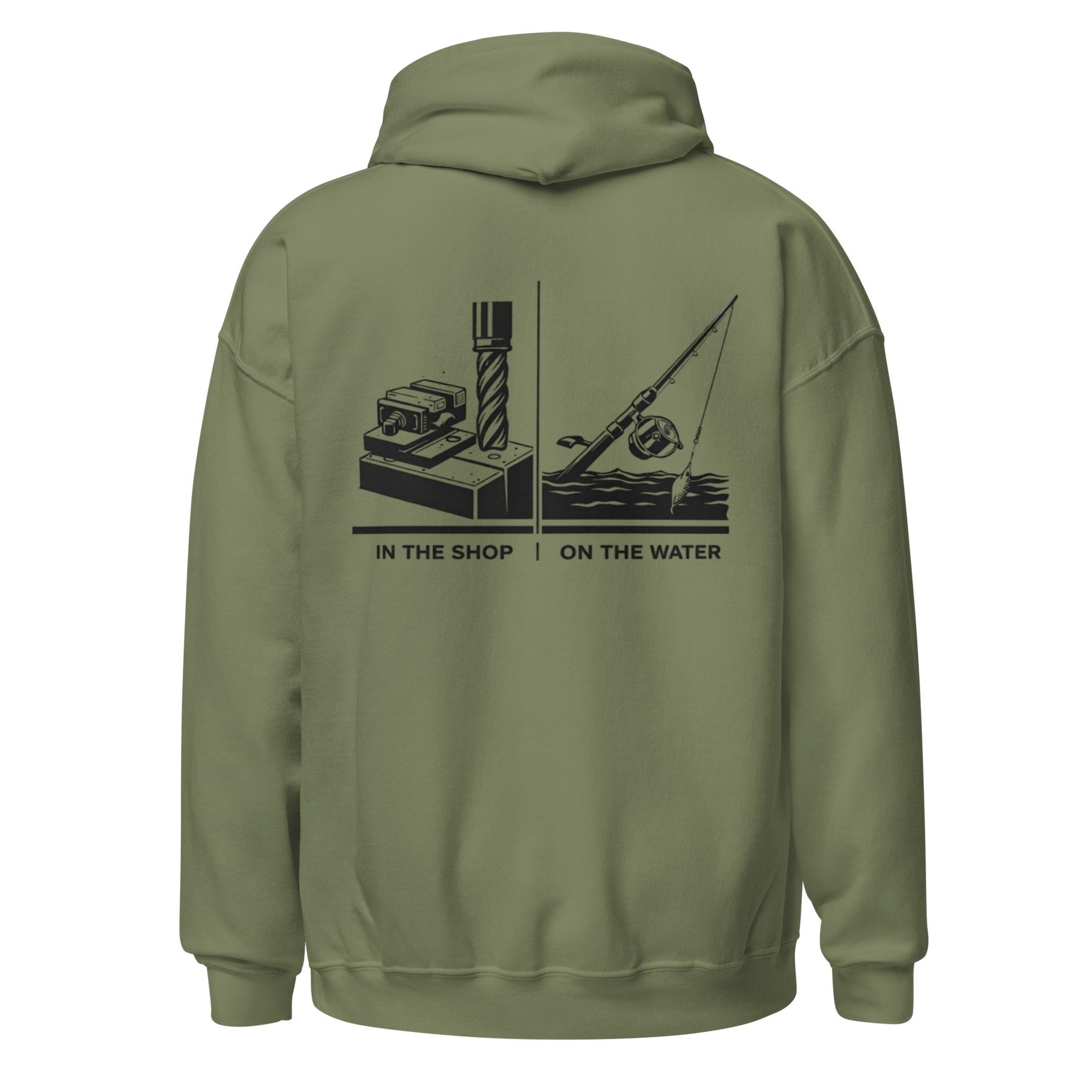 Featuring a clean front hit and a detailed back graphic that ties machining and fishing together, this hoodie is made for early mornings, long days, and time spent doing things the right way. Understated, durable, and designed for those who respect precision.
